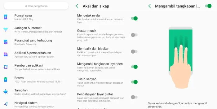 - Untuk mengaktifkan cara Screenshot Infinix Zero 5G 2023 dengan 3 jari, Sobat bisa mengikuti langkah-langkahnya melalui gambar dibawah ini ya.