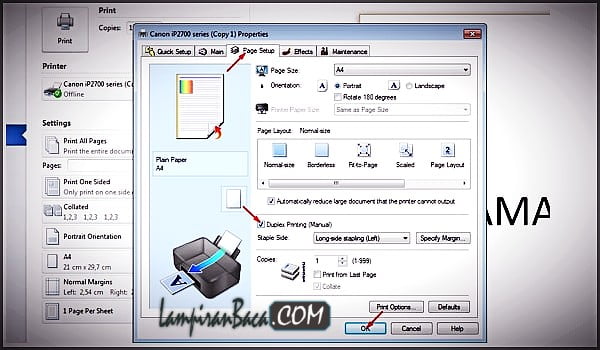 Cara Print Timbal Balik Secara Manual