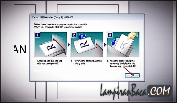 11. Kalau sudah selesai membalikkan Pilih OK untuk mulai mencetak kembali.
